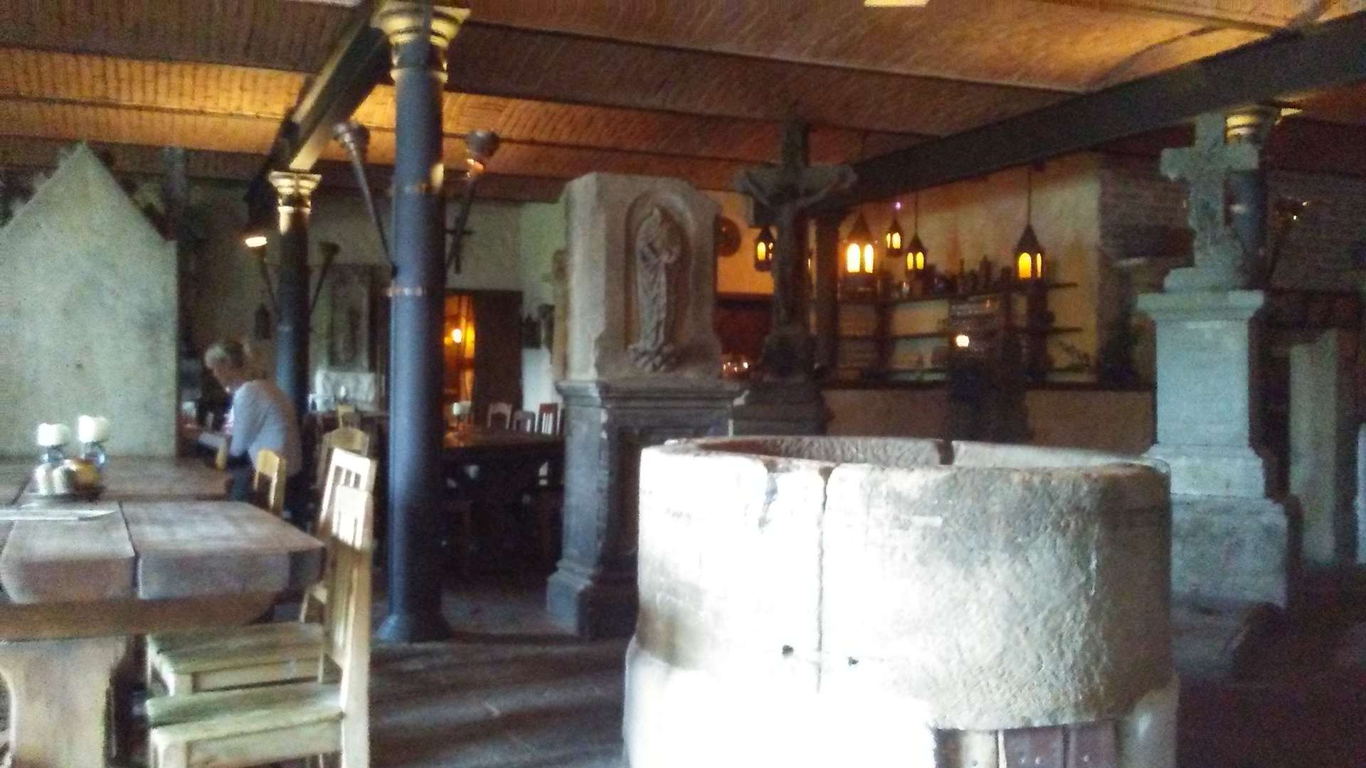 gruseliger Speisesaal mit Grabsteinen
