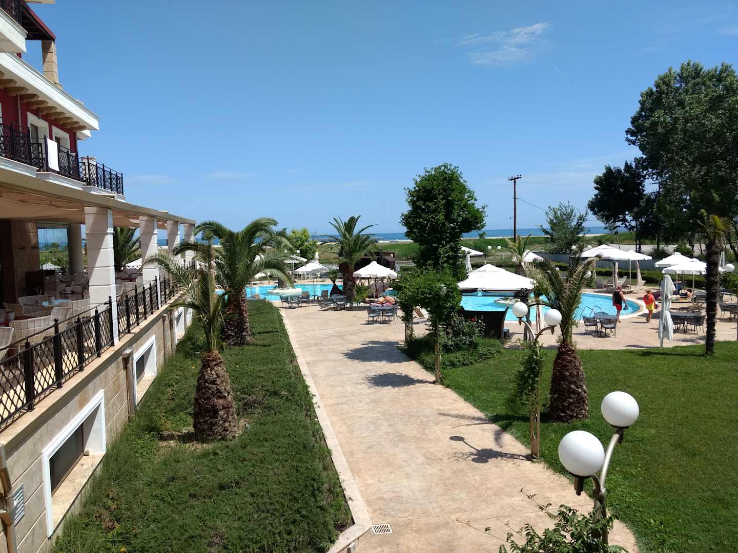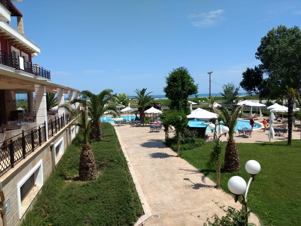 Blick vom Balkon auf den Pool
