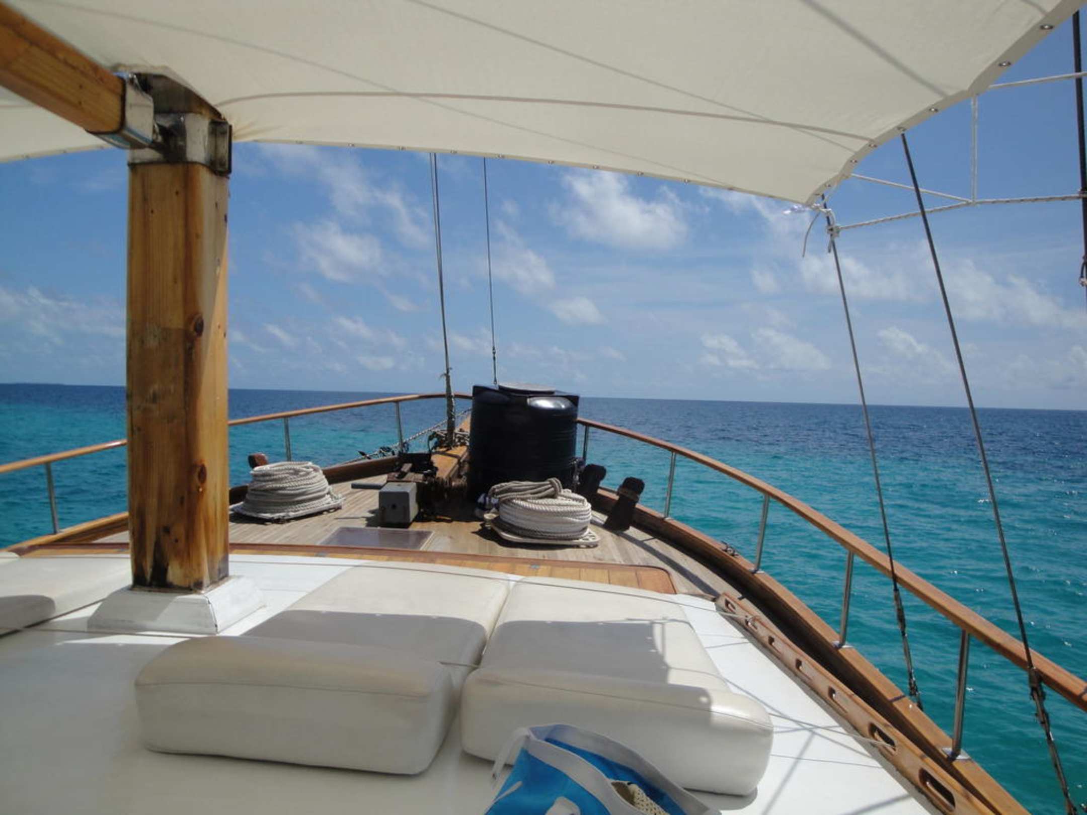 das Sonnendeck auf unserem Boot! Sehr bequem und herrlich mit dem Blick aufs offene Meer!