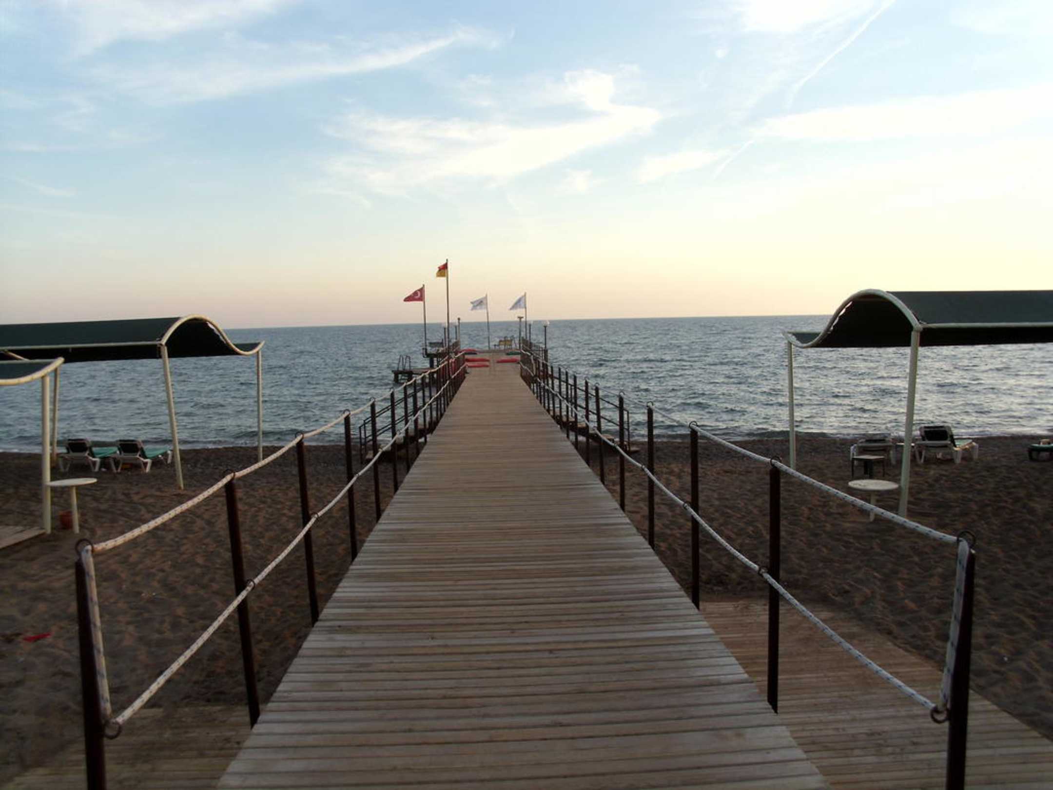 Seebrücke am späten Nachmittag, gleich links davon wäre der Zugang für Rollifahrer