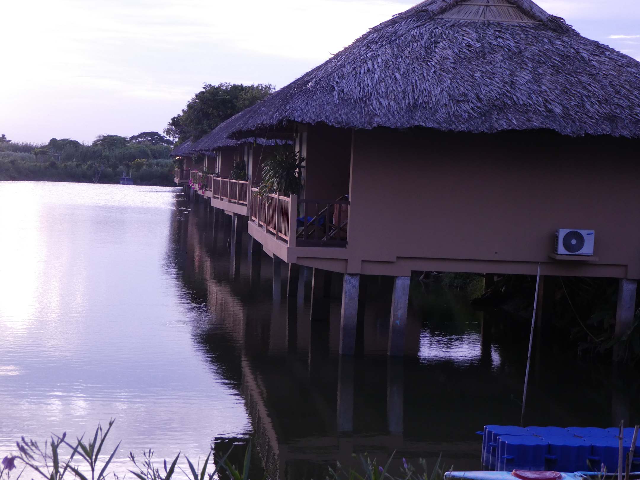 Bungalows in der zweiten Reihe, nicht direkt am Mekong Fluss, an einem herstellten Kanal.
