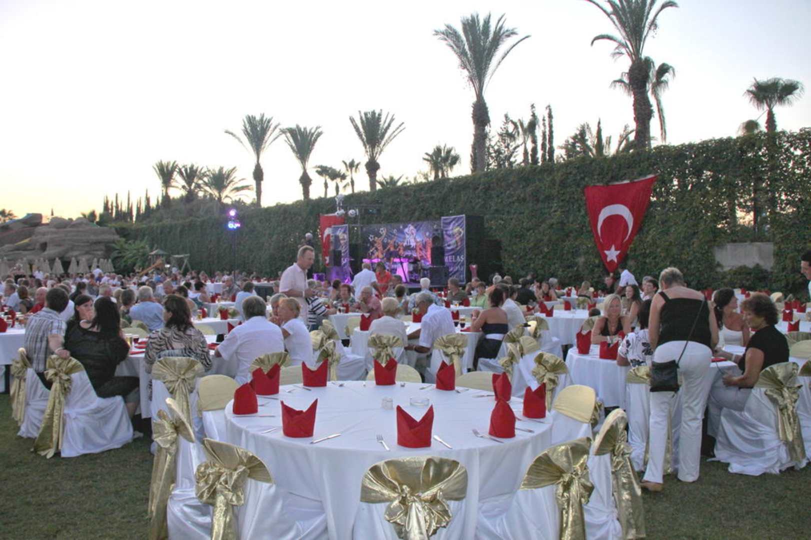 Alle 14 Tage findet im Aquapark ein Gala-Abend statt. Wundervoll geschmückte Tische.