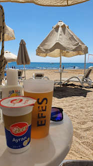 Strand mit Getränken von der Strandbar.