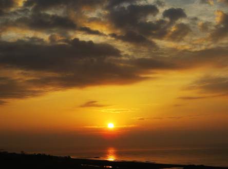 Sonnenaufgang vom Balkon unseres Hotelzimmers.