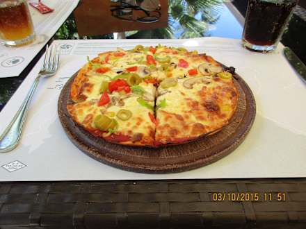 Sehr leckere Pizza am Strand