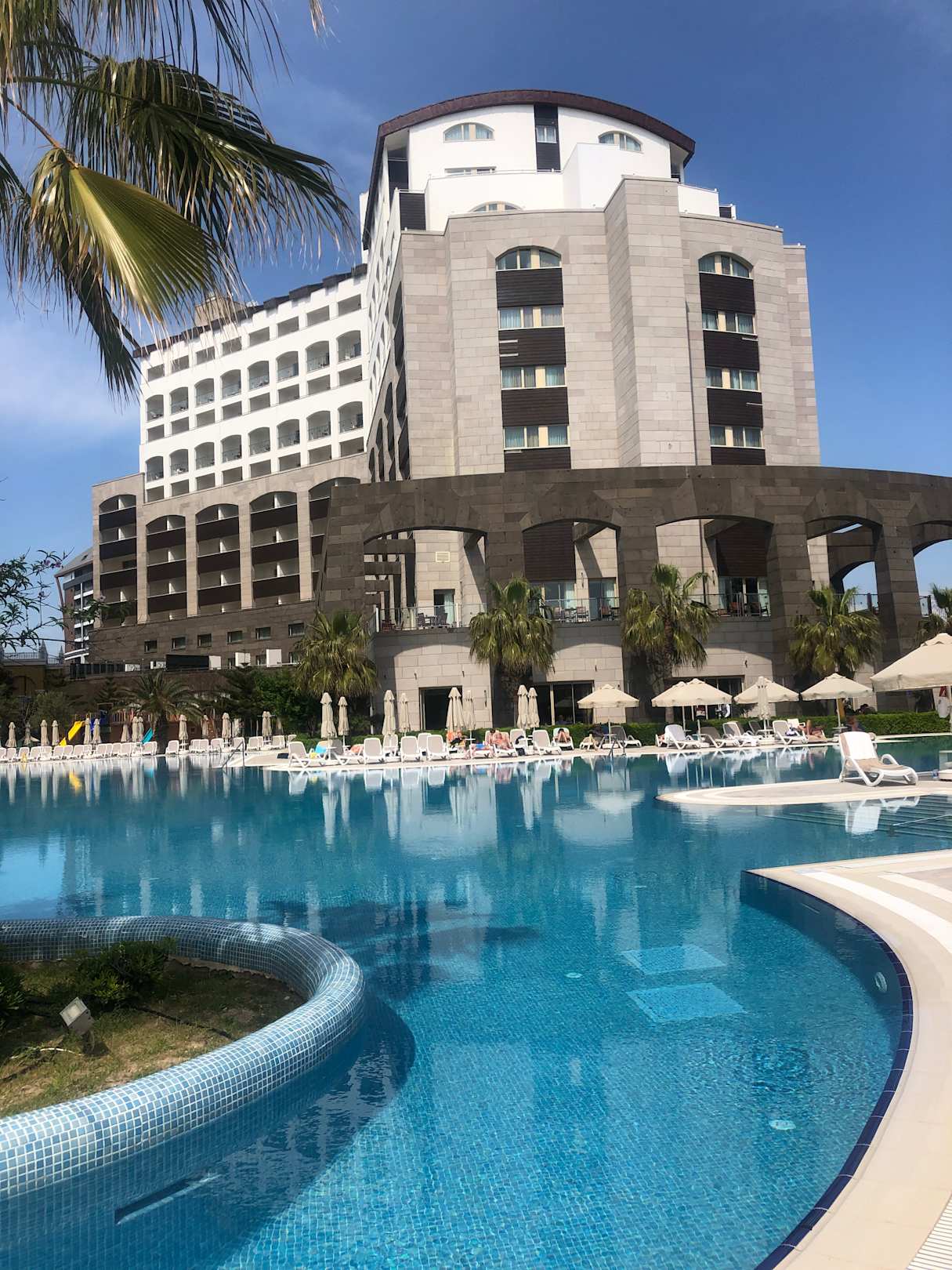 Pool mit Sicht auf das Hotel