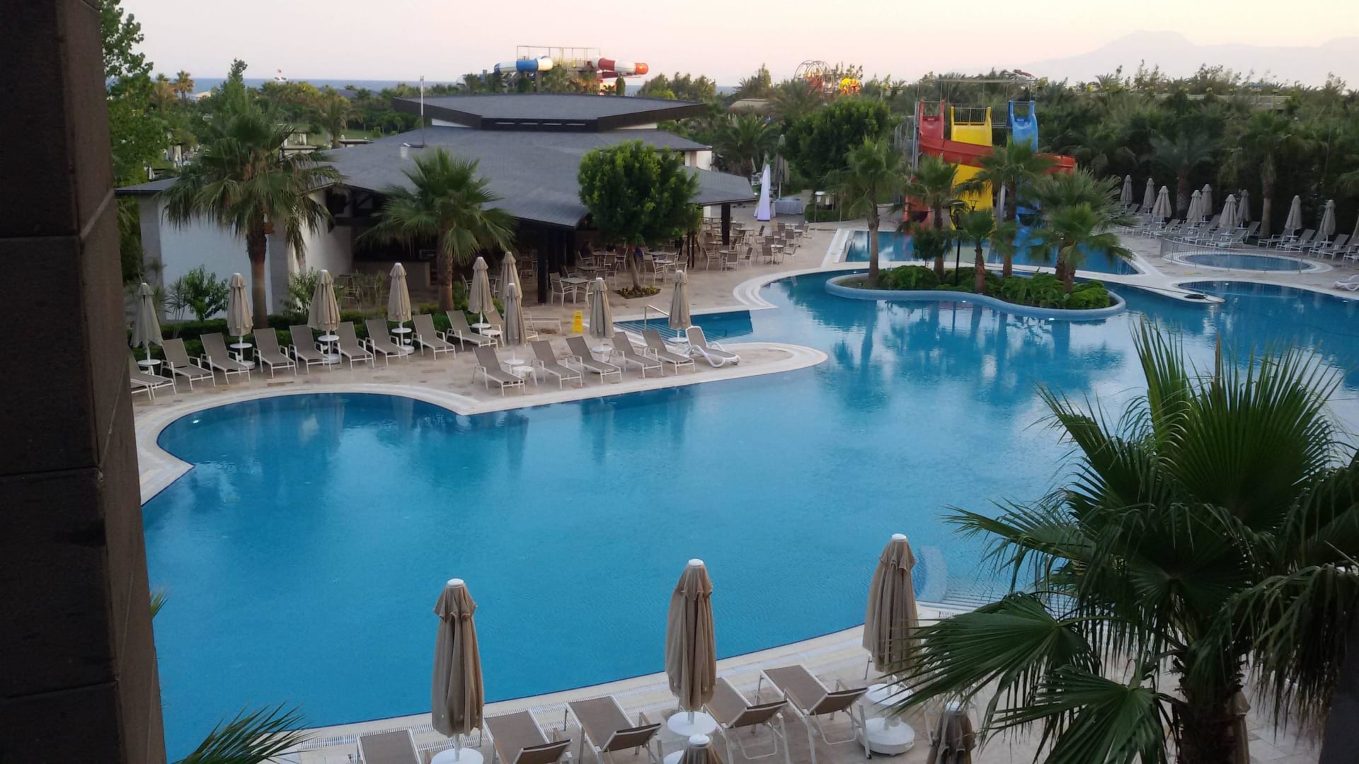 Blick von der Lobbybar auf den Pool