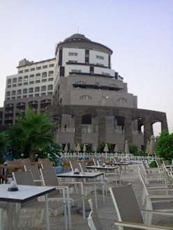 Blick auf das Hotel von der Poolbar aus.