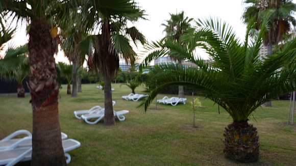 Gartenanlage mit vielen Palmen