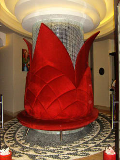 Zugang mit angedeuteter Lotusblüte zum Spa-Bereich