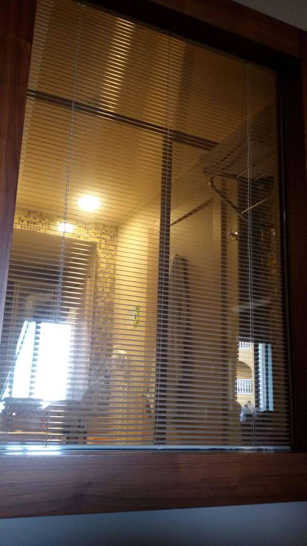 Blick durch Badezimmerfenster