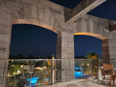 Blick von der 24h-Lobby-Bar auf den Pool