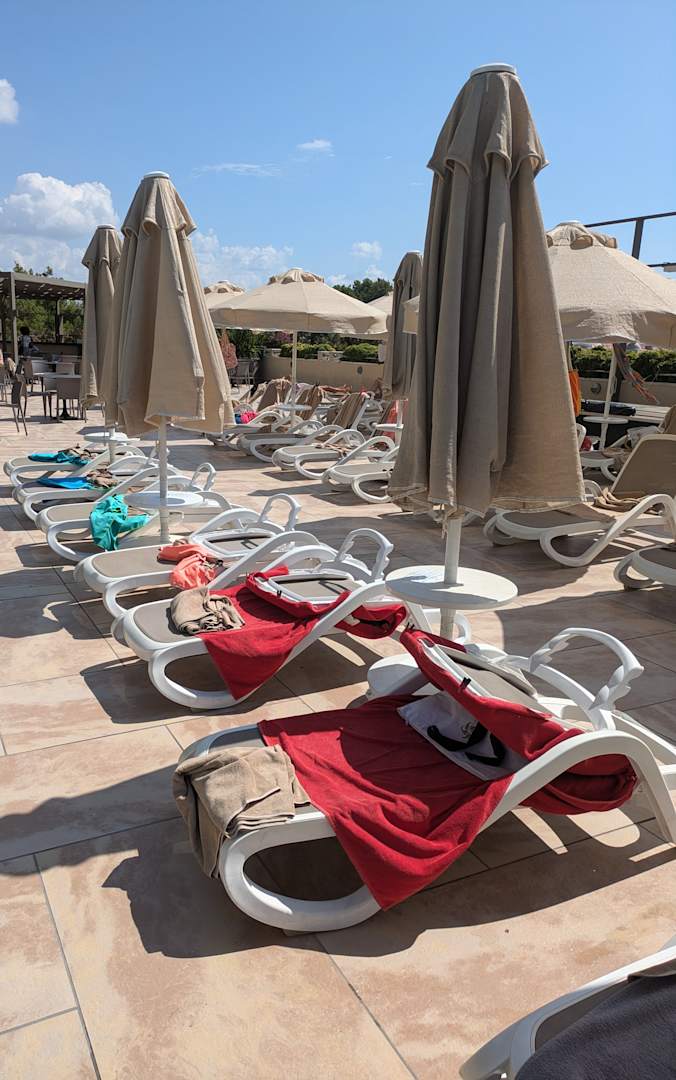 Es war hier bereits 12 Uhr!! Niemand war bisher da! Und das ist nur ein kleiner Ausschnitt vom Pool. Das sollte man ändern! Aber der Poolboy spielt das Spiel leider mit