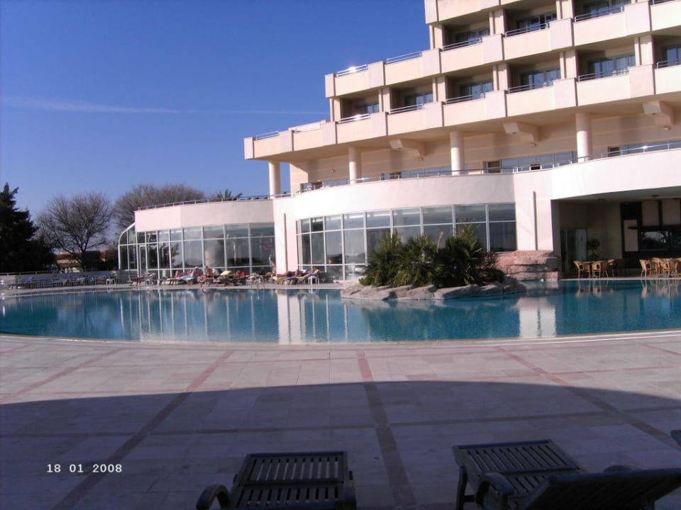 Der Swimmingpool liegt im 4. Stock. Links das beheizte Hallenbad