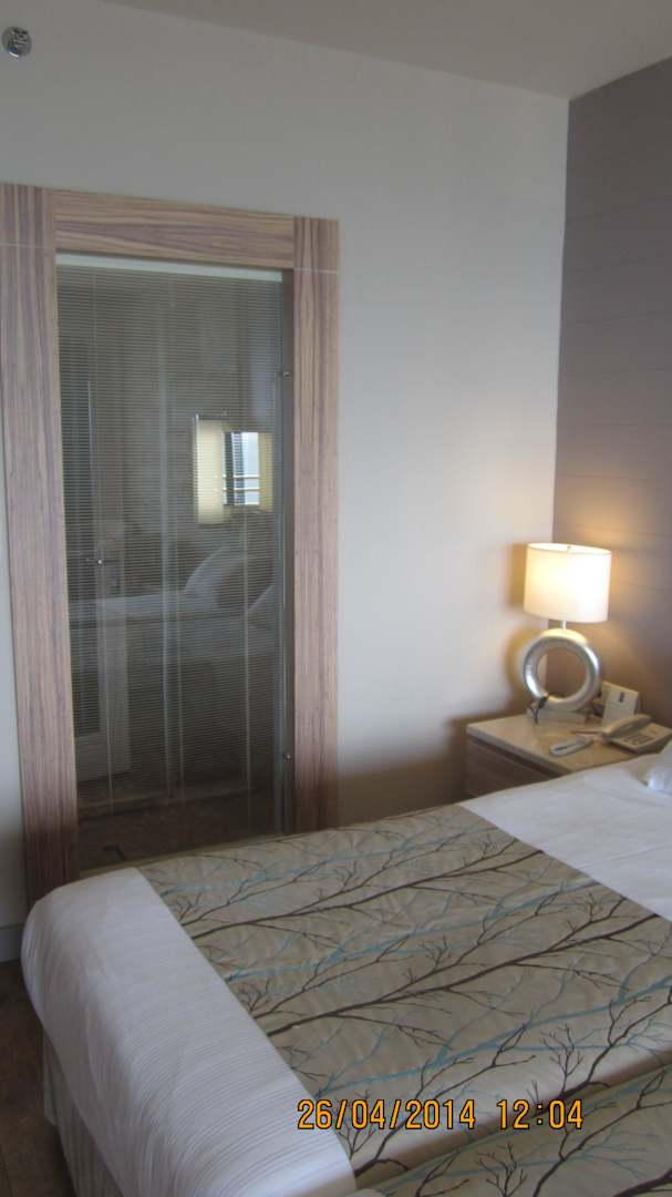 Hiter der Glaswand das Badezimmer ,Rollo verschlie