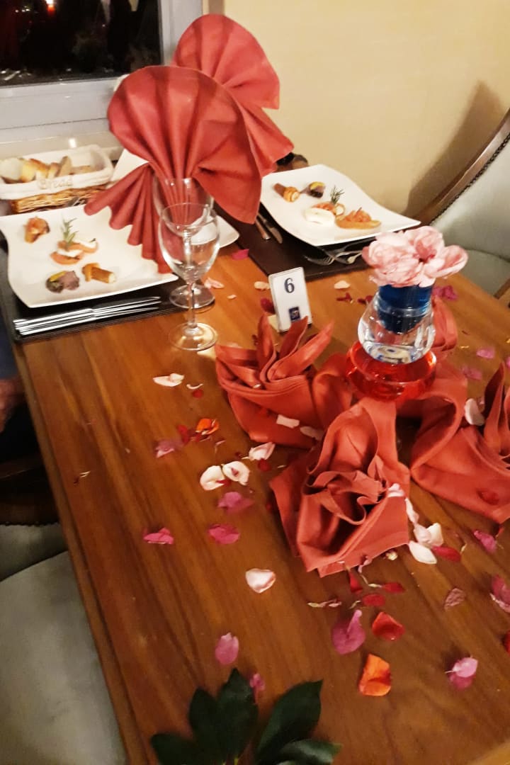 unser liebevoll geschmückter Tisch im A la carte-Reataurant. Herzlichen Dank an Emre :-)