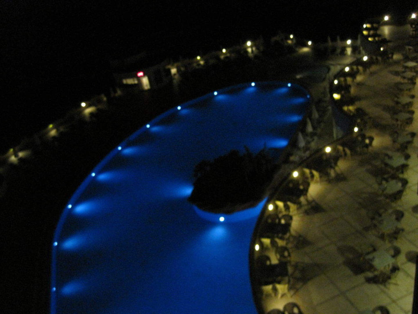 Abendlokal mit Blick auf den Pool der im 5 Stock ist