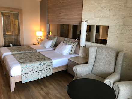 ZimmerSehr schön und geräumiges Zimmer. Wir haben uns sehr wohlgefühlt. Die Betten sind sehr bequem und gross genung für große Europäer :)