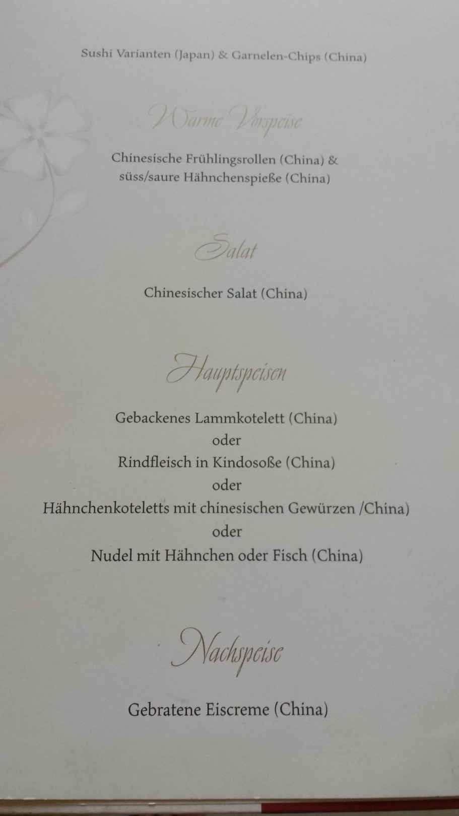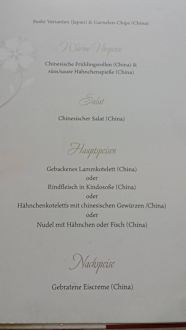 Speisekarte vom China Restaurant