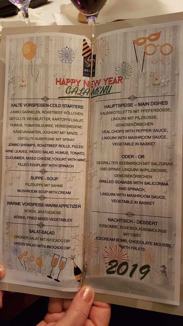 Speisekarte für Silvestergala 2018