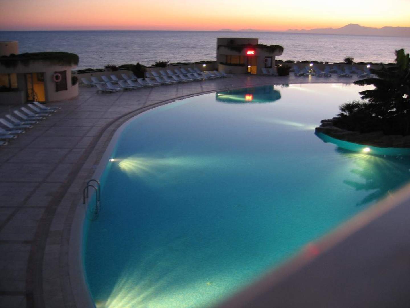Pool (Blick von der Restaurant-Terrasse aus) am Abend