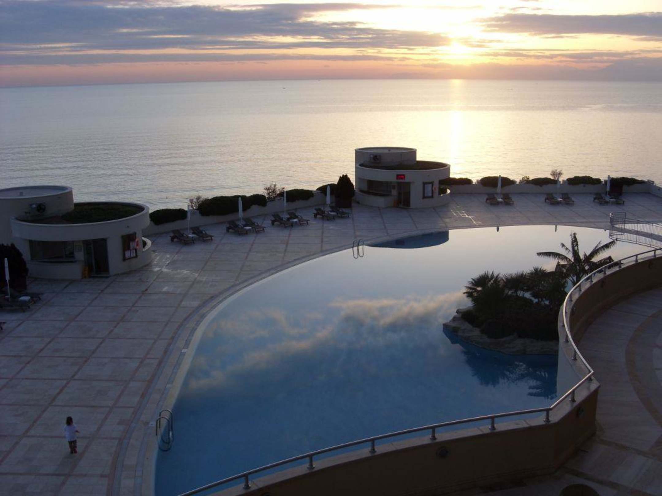 Blick vom Balkon über den Pool