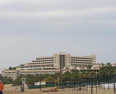 Blick von Side kommend auf das Hotel.