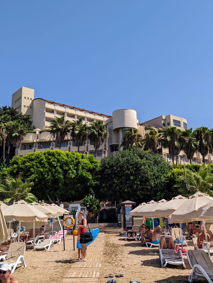 Hotel vom Strand aus gesehen.