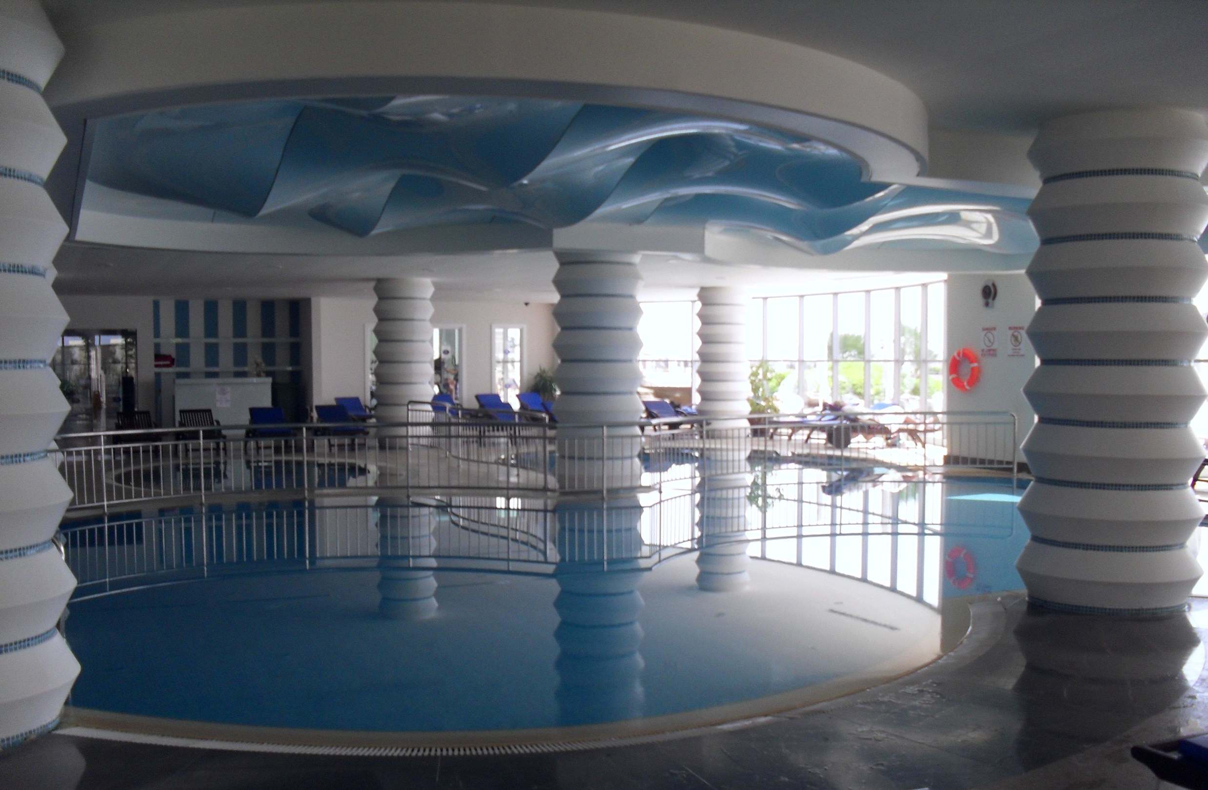 Hallenbad mit Blick zum Outdoor-Pool
