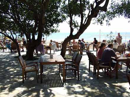 Die Beach-Bar unter schattigen Bäumen - direkt am Strand.