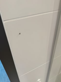 Zerbrochene Fliese neben der Dusche