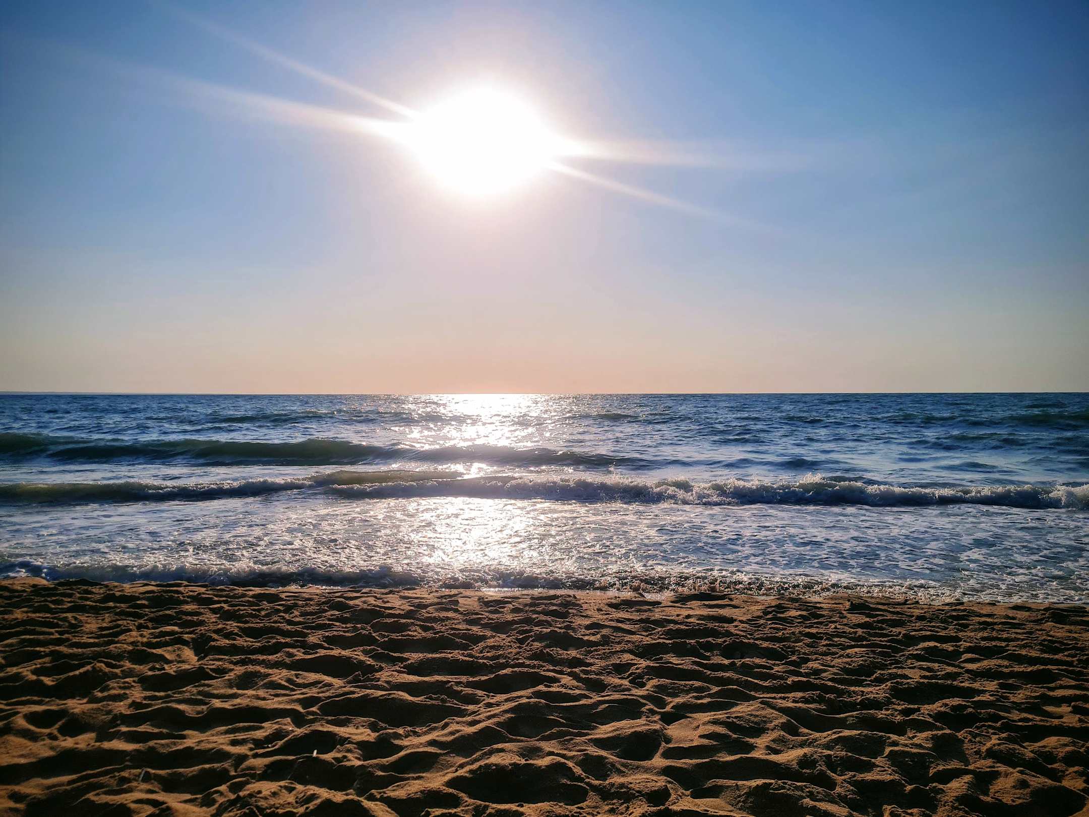 Sandy beach (ideal of children) at the sunrise