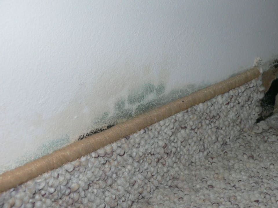 Durch die Feuchtigkeit im Badezimmer (schlechte Abdichtung Badewanne zu Wand bzw. Duschkabine zu Wand) kam es zur Schimmelbildung