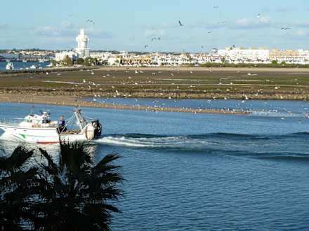 Fischer mit MövenBlick vom Hotelzimmer "seitlicher Meerblick"