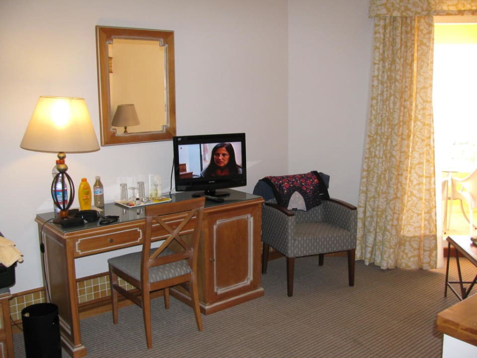 Junior-Suiteim Wohnbereich, Schreibtisch mit Minibar und weiterer Sitzgelegenheit