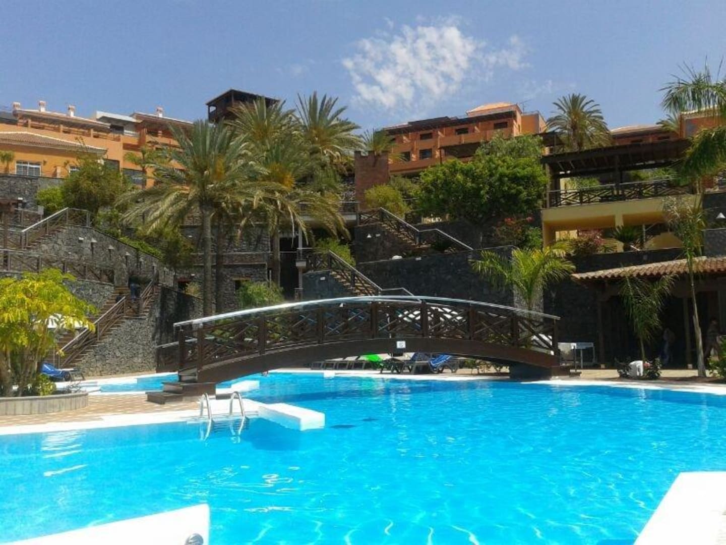 Vista piscina, hotel detras