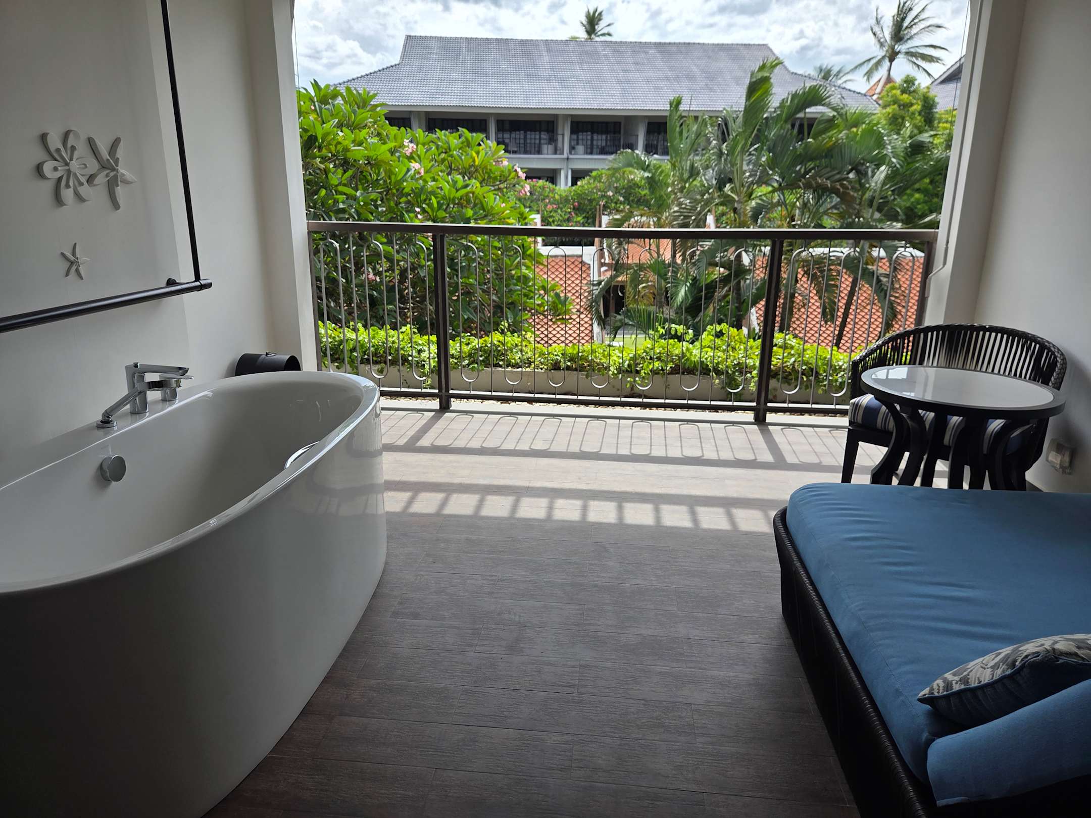 Balkon mit Badewanne und Ruhesofa