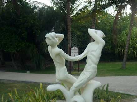 Eine der Skulpturen im Garten