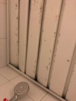 Decke im über der Dusche. Konnten nicht sicher sagen, ob es Schimmel ist
