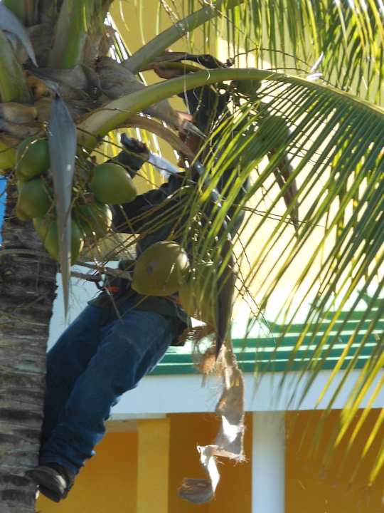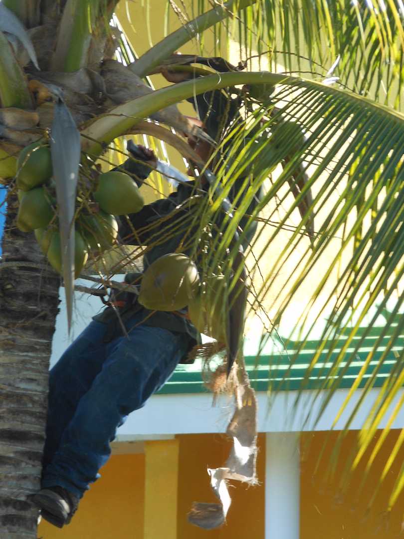 Hier werden die Kokosnüsse von den Palmen entfernt
