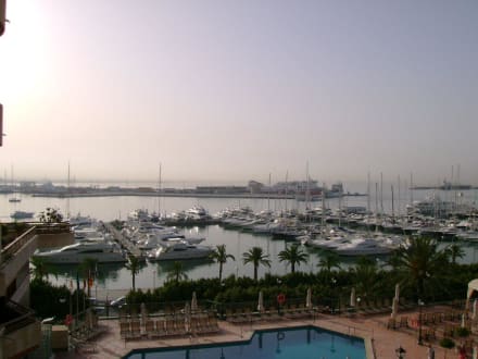 Blick von der Terrasse zum Hafen