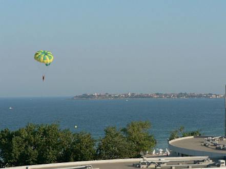 Ausblick nach Nessebar rechts vom Balkon des Zimmers Hotel "Iberostar Sunny-Beach-Resort"