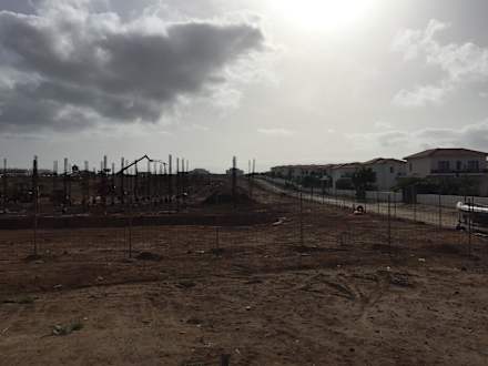 Blick auf die Baustelle vom Strand