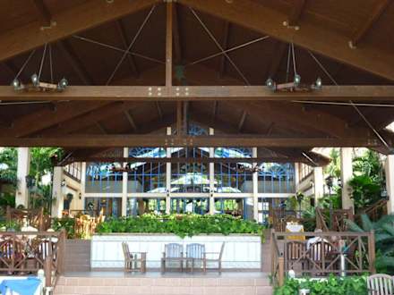 Blick vom Garten zur Lobby
