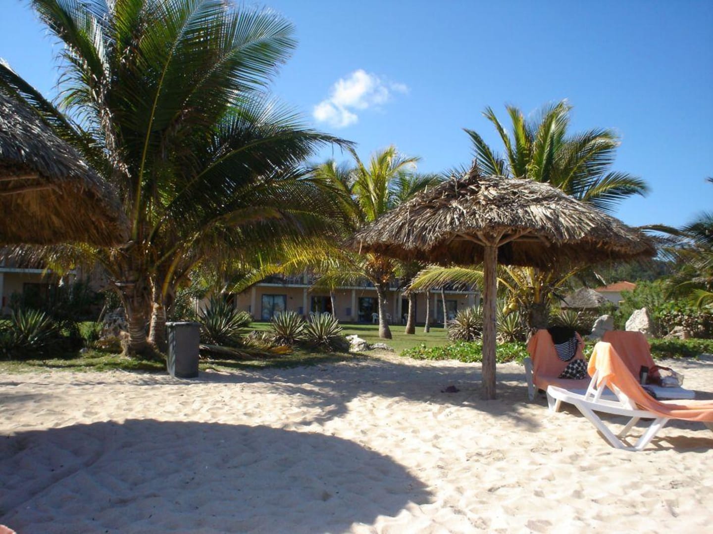 Hotelanlage vom Strand aus gesehenSuperclub Breezes. Feiner Sandstrand unter gemütlichen Strohsonnenschirmen