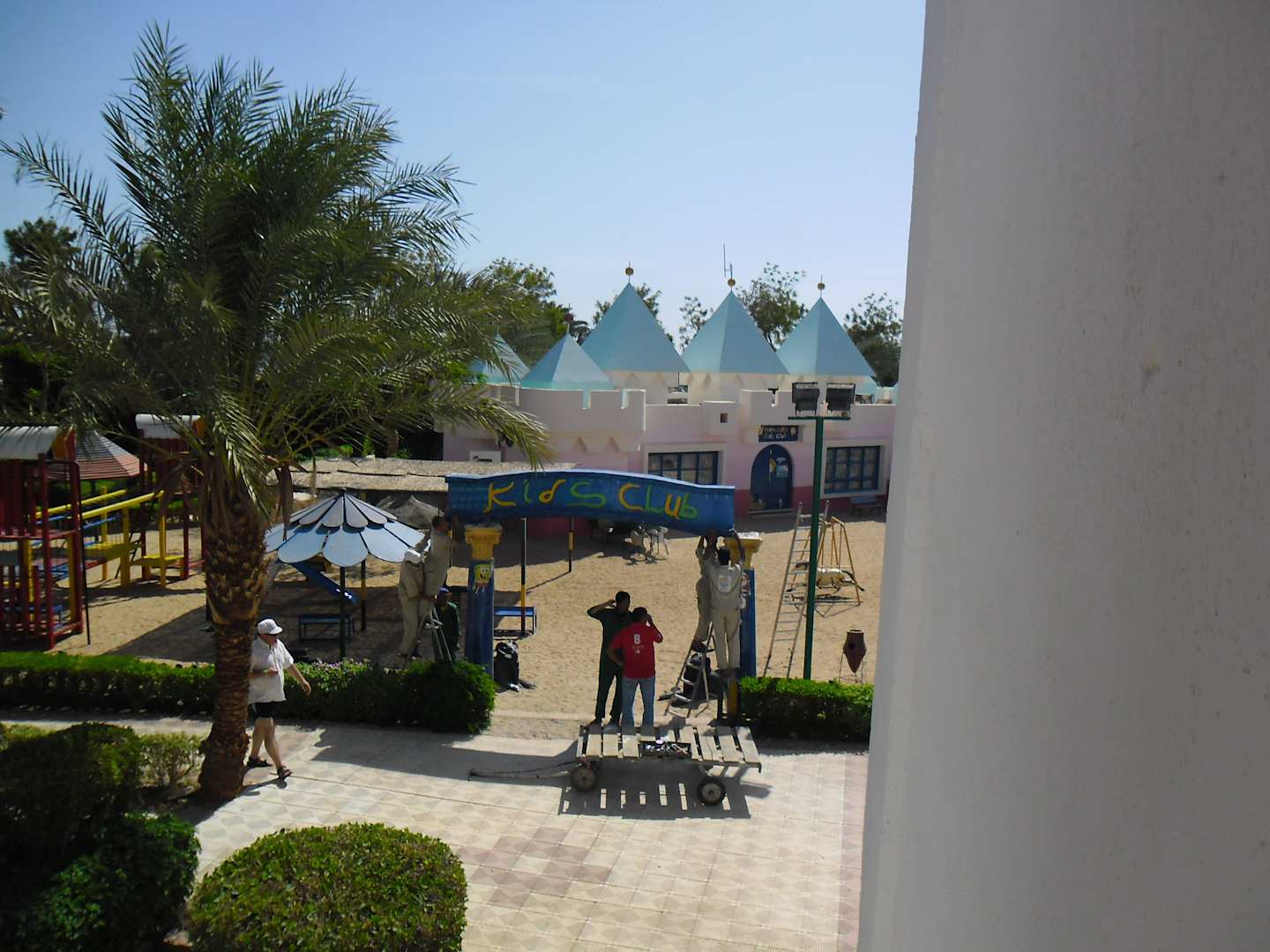Eingangsschild wird angebracht am Kidsclub Menaville Safaga