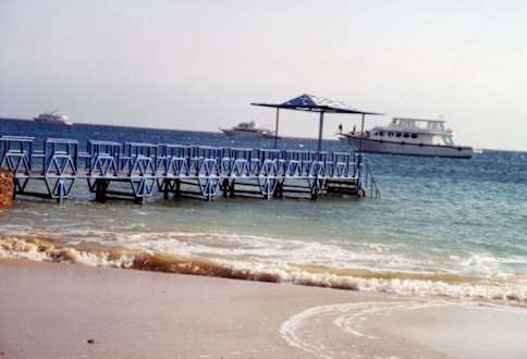 Steg des Hotels Menaville BeachUnter der untersten Stufe im Wasser lebt ein Blaupunktrochen! Wunderschönes Tier, er versteckt sich nur gerne...