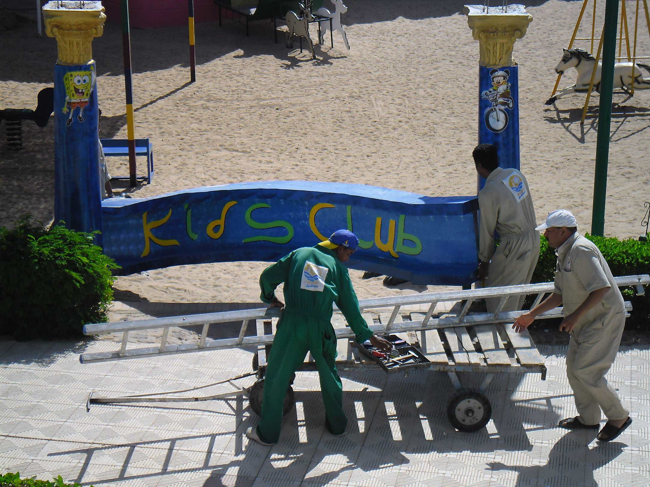 Eingangsschild wird angebracht am Kidsclub Menaville Safaga