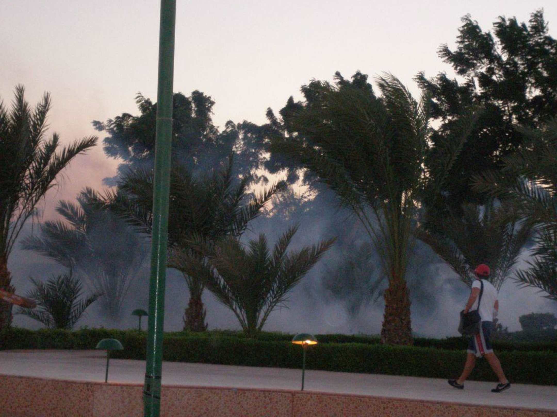 allabendliche NebelaktionJeden Abend pünktlich halb 6 lief ein Gärtner mit einer Nebelmaschine durch die kleinen Bungalows. Und pünktlich zu dieser Zeit versammelten sich alle Strandgäste am Wasser um dem Gestank zu entgehen. Der Nebel sollte die zahlreichen Mücken bekämpfen, aber wir wurden trotzdem massenhaft gestochen. Der Nebel und der Gestank verschwanden dann auch wieder so schnell wie sie gekommen waren.