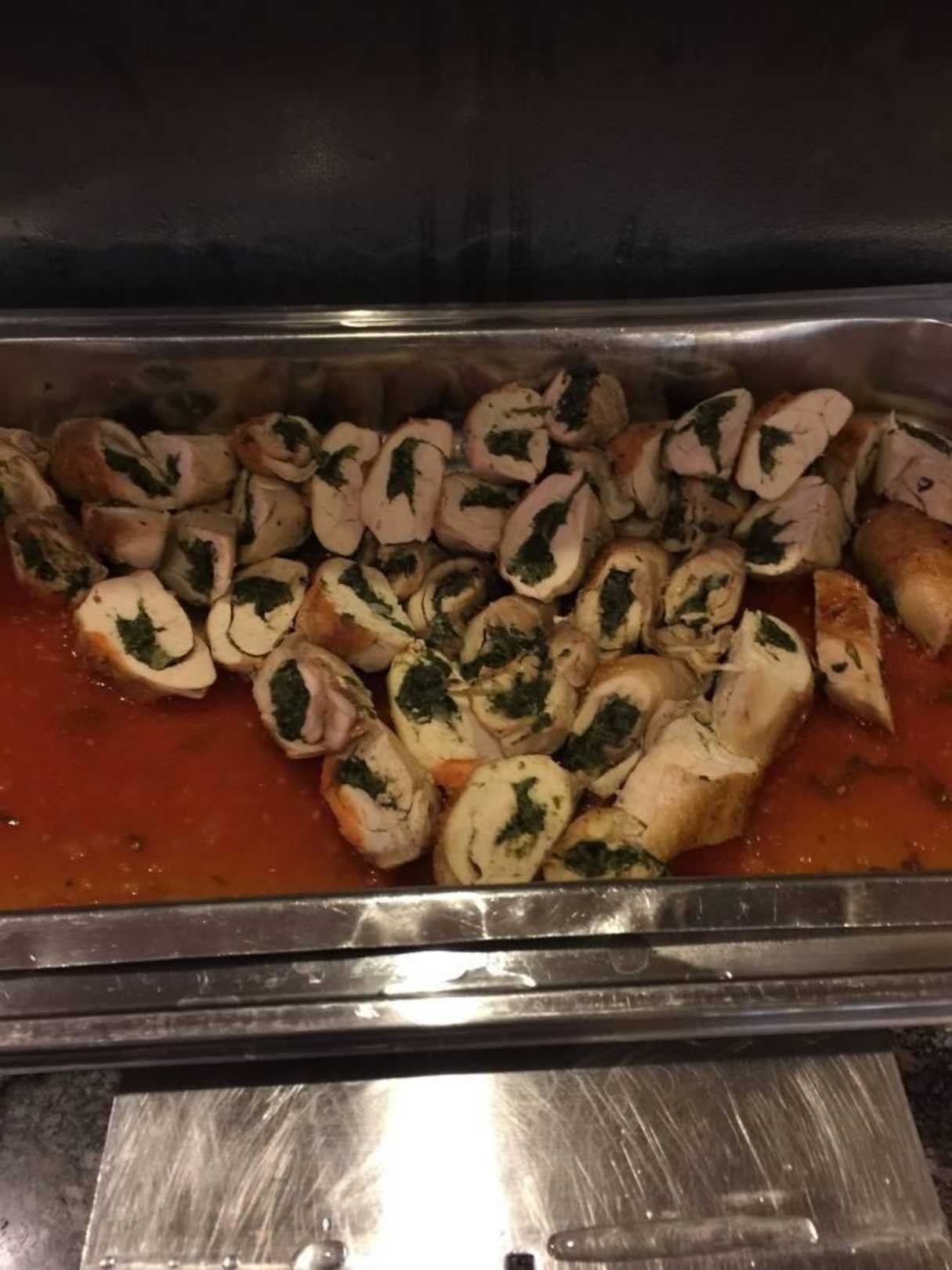 Mittagsmenü schmackhaft zubereitete gefüllte Hühnerbrust mit Sauce